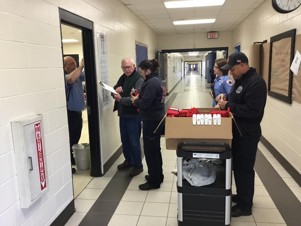 Thanks to donations, the bags containing tourniquets and other medical items are now in every Elementary and Middle school in the Burton Fire District. All the teachers in those schools have also been trained to use them.
