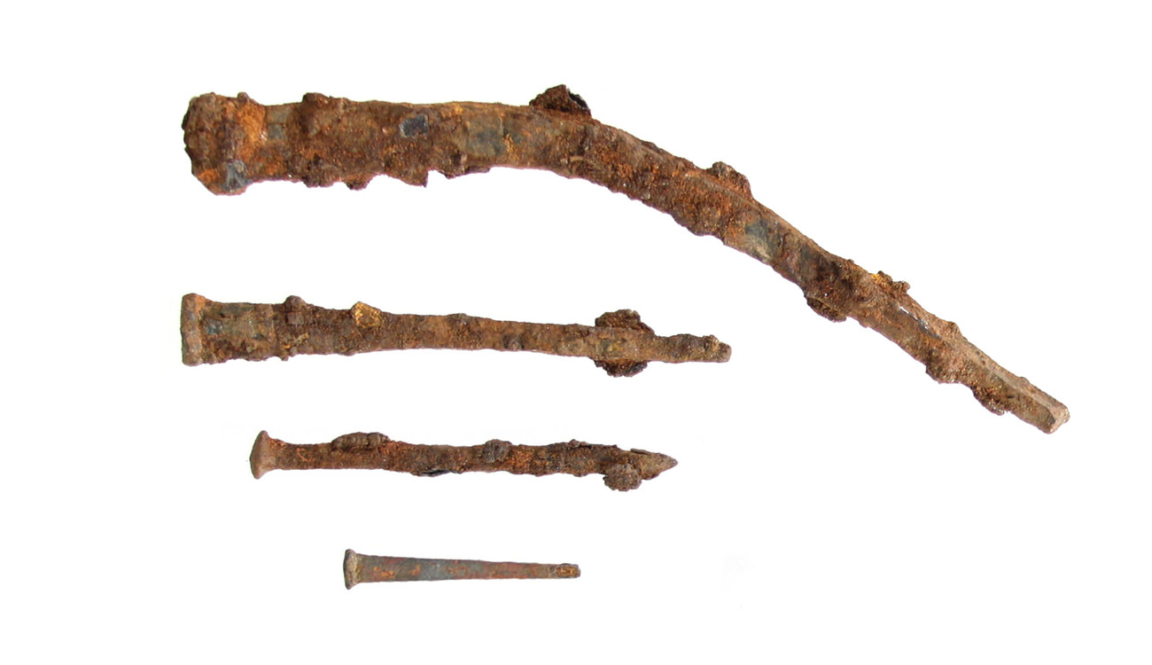 What kinds of artifacts tell archaeologists about buildings? Think about the parts of a building that rot away and the parts that might stay in the ground. Architecture-related artifacts can include nails, window glass, roofing slates, shutter hooks, door latches, door knobs, hinges, keys, bricks, paving stone, and plaster. These kinds of artifacts give us information about how homes were constructed, the dimensions of buildings, the quality of interior fittings, and how a building was used.