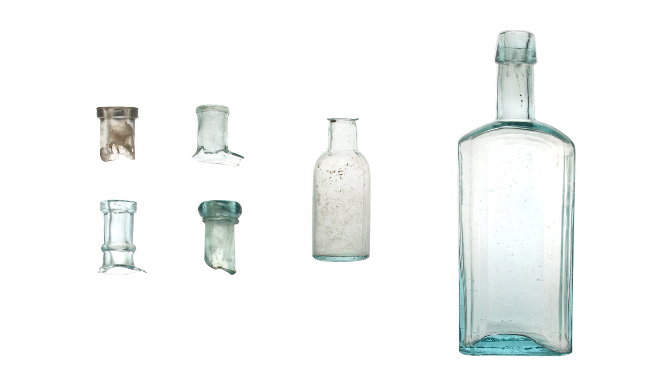 While historic photographs can give us hints about how the houses at Mitchelville were constructed, they cannot take us inside the homes to see how people lived. Archaeologists use household, furniture, and clothing-related artifacts to understand daily life. By looking at the types bowls, plates, and cups, cooking pots and utensils, animals bones, and glass bottles and food containers they recovered during the excavations, archaeologists can learn about the goods people purchased, their economic and social status, the kinds of foods they ate, how they cooked food, how they stored food, and even their taste in dish patterns and colors. At Mitchelville archaeologists recovered 4,162 artifacts that helped them learn about the kinds of consumer goods available to the town's residents.