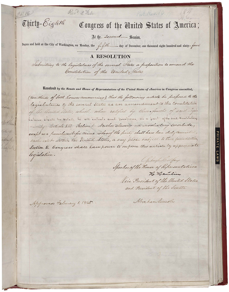 What would happen to former slaves after the war ended? Would the courts undo emancipation? President Lincoln pushed for the permanent abolition of slavery. The 13th Amendment to the Constitution was passed by Congress on January 31, 1865, and ratified by the states on December 6, 1865.